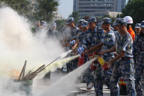 应急疏散逃生演练结束后,消防灭火演练活动正式开始,武警消防官兵向广大师生讲解了初期火灾扑救等基本灭火知识并演示了灭火器的正确使用方法,部分学生代表还上台体验了如何扑灭初期火灾等活动。