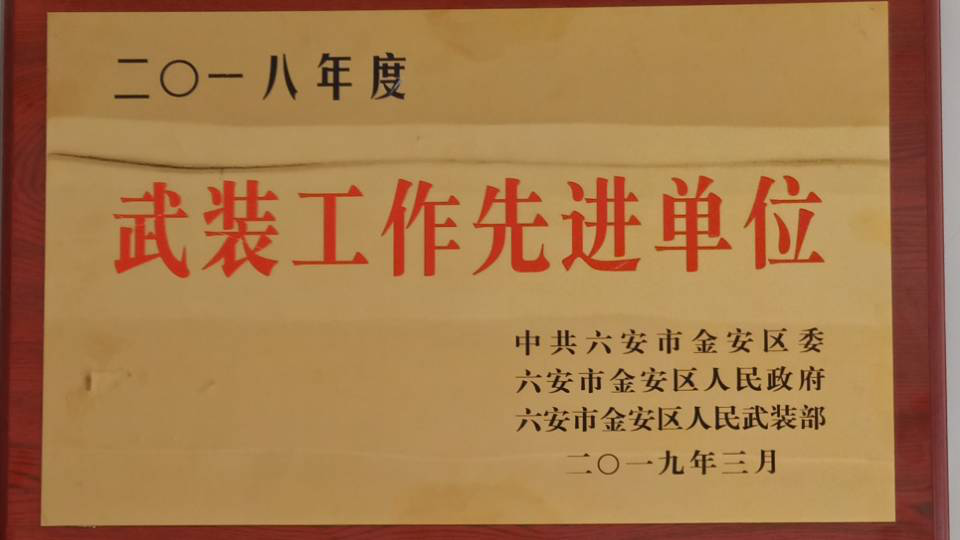 日前,六安市金安区2018年度全区武装工作表彰会在区行政中心会堂召开,beat365因武装工作成绩突出,被金安区委、金安区人民政府、金安区人民武装部授予“2018年度武装工作先进单位”荣誉称号。