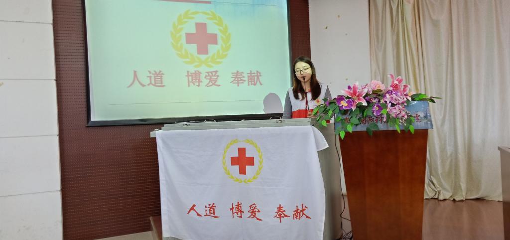 市红十字会朱媛媛老师首先讲述了红十字会知识,包括红十字运动的起源发展、红十字的原则、组织机构、标志及人道、博爱、奉献的红十字精神,使同学们对红十字有了初步了解。