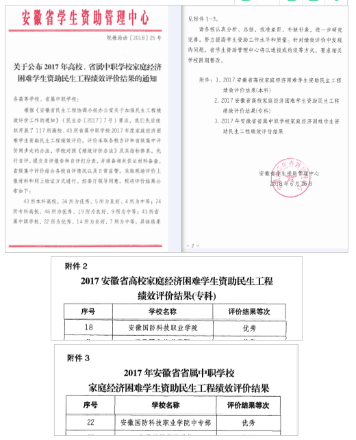 2017年安徽省高校学生资助高职、中职民生工程绩效考核优秀
