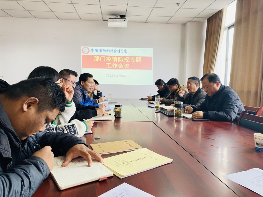 会上,孙武传达了学校召开的全体中层干部会议精神,主要传达了学校党委书记余嗣元和校长李麟书的讲话精神和工作要求。党委书记余嗣元在中层干部会上指出,近期我国疫情多发频发,教育系统疫情防控面临复杂严峻形势和挑战。余嗣元要求,要提高政治站位,守牢学校疫情防控底线,决不发生聚集性疫情;筑牢疫情防控思想防线,克服麻痹思想、厌战情绪、侥幸心理、松劲心态;抓牢抓细抓实疫情防控工作,校门管理再严格、信息报送再精准、核酸检测频次再加大、个人责任落实再强化、教学后勤保障质量再提升、思想政治教育工作再加强、督导检查工作再部署。校长李麟书在中层干部会上通报了近期违反学校疫情防控工作典型案例,并就如何从严从紧做好疫情防控工作做了具体工作要求。他要求,要强化责任担当,严格落实“两案九制”,严格管控学校校门,严格管控人员活动,切实压实“四方责任”,落实“四早”要求,加强物资储备,加强应急演练,强化宣传引导,严格督查问责,切实维护师生健康安全。