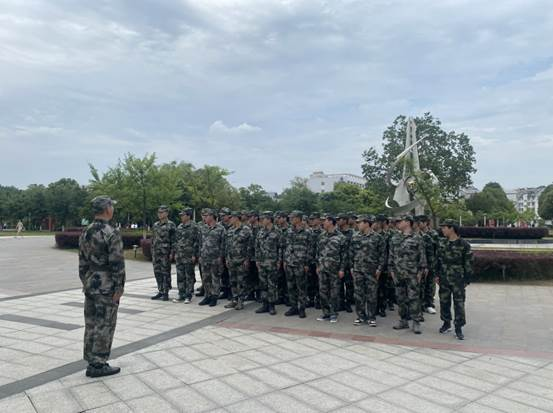 大学生国防动员志愿服务团在军工魂广场做队列训练