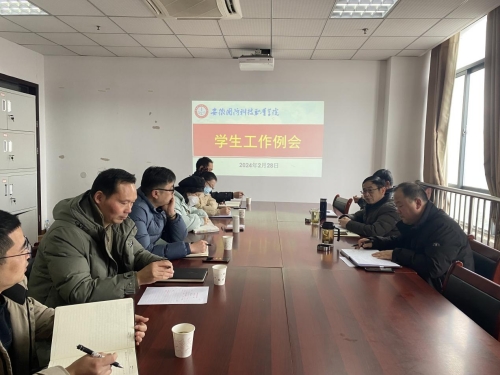 2月28日下午,学生处在秉心楼1012会议室召开期初学生工作会议。学生处、安全保卫处处长孙武、学生处副处长张志鸿、安全保卫处副处长孙策、各二级学院书记、副书记参加会议。会议由孙武主持。