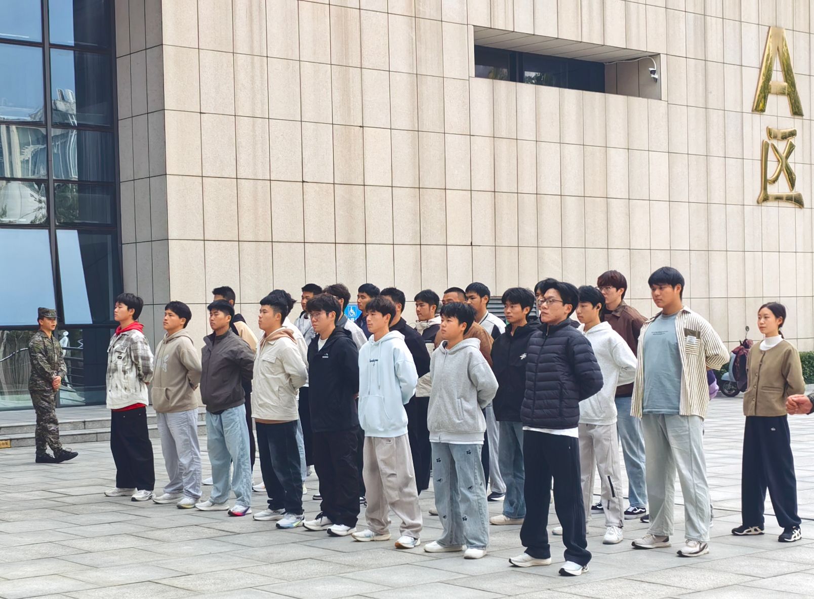 训练现场,成员们以整齐的队列、饱满的状态投入其中。从基本的立正、稍息到队列行进,动作力求规范统一。身着迷彩服的骨干成员以身作则,带领大家严格对标标准,在反复打磨中锤炼作风。参与训练的学生表示,队列训练不仅是姿态的矫正,更是意志的磨砺,让大家深刻体会到“令行禁止、团结协作”的内涵。