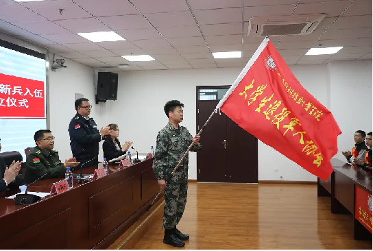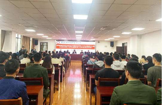 孙武介绍了学校2023年上半年征兵工作情况和32名应征入伍新兵的定兵情况。新兵杨胜波代表学校2023年上半年应征入伍新兵发言。