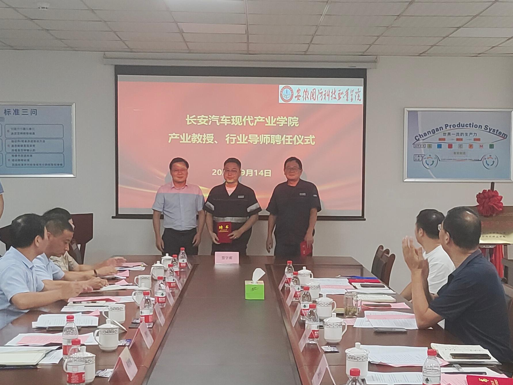 随后,学校分别与产业学院共建企业合肥长安汽车有限公司、合肥至信机械制造有限公司、安徽强龙工业有限公司签订了《长安汽车现代产业学院校企共建合作办学协议》,徐正红与徐耀共同为产业学院揭牌。