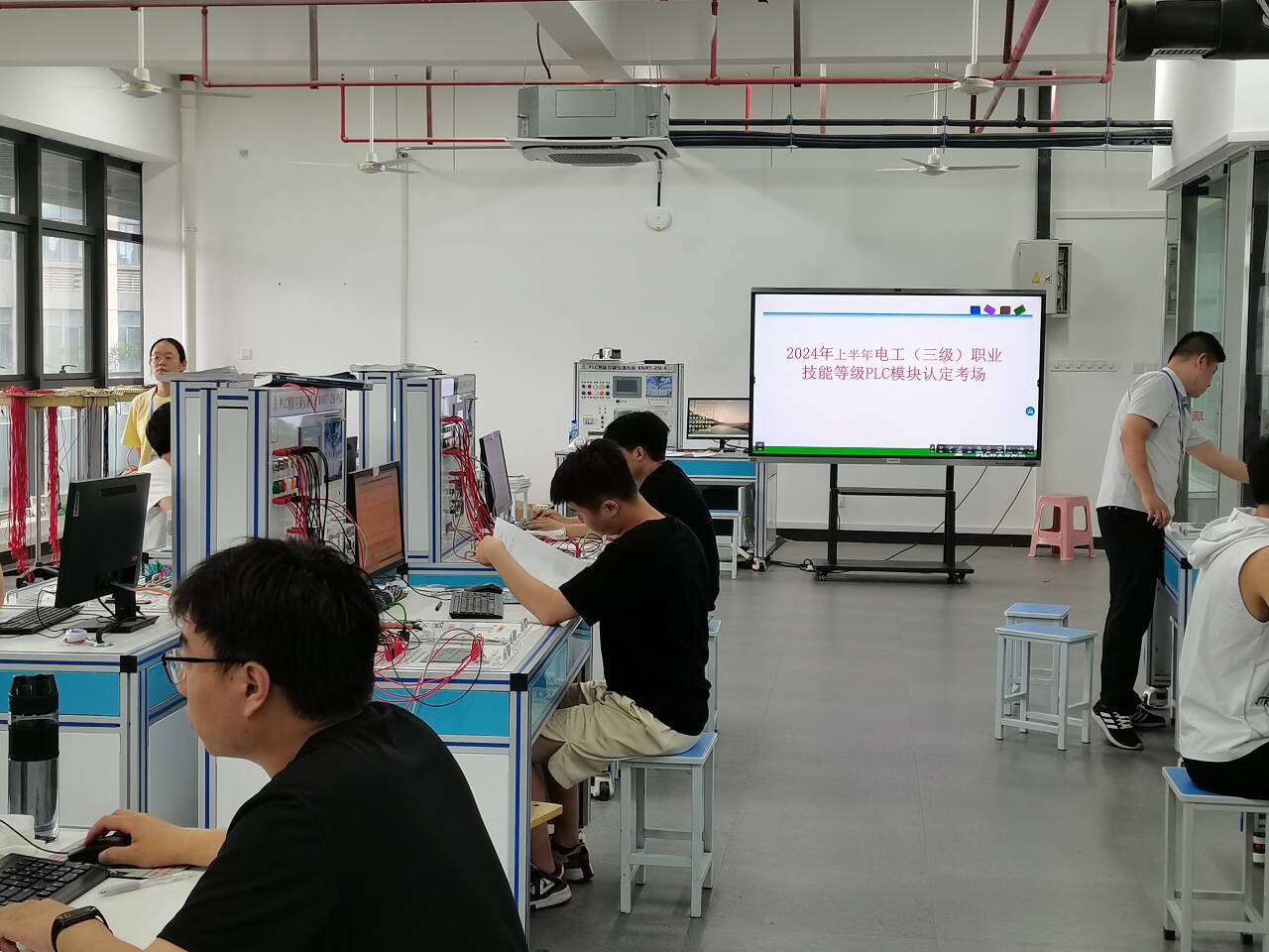 本网讯(电气技术学院 杨众博) 为进一步落实职业技能等级评价制度,推进课证融通,有效提升学生的职业技能水平,6月22-23日,电气技术学院组织完成2024年第二期电工职业技能等级认定工作,本次电工职业技能等级认定等级为电工中级(四级)和电工高级(三级),其中中级有113人参加考评,高级有21人参加考评,考试分为理论和实操两个环节,为保证考试顺利进行,学院在制定考务工作流程、安排布置考场、选派考评员等方面进行了周密部署和安排,确保认定工作的公正、公平、有序。