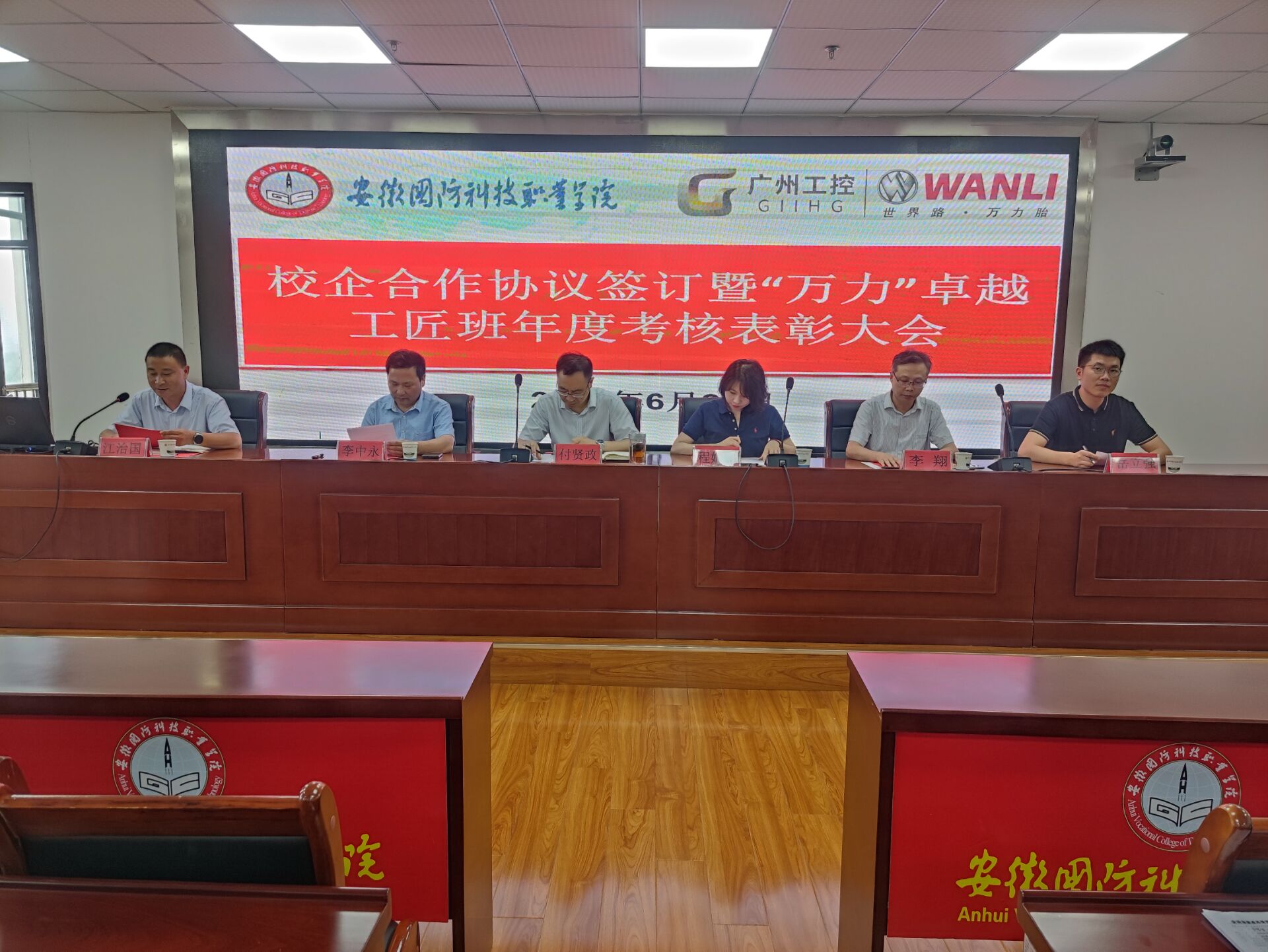 本网讯 为进一步推进“万力”卓越工匠人才的培养,弘扬“锐意进取,精益求精,工作严谨、爱岗敬业”的工匠精神,6月26日,电气技术学院组织开展“万力”卓越工匠班年度考核表彰大会。合肥万力轮胎有限公司人力资源部部长程婧娴、招聘主管岳立强,校党委委员、副校长付贤政,校企合作办公室主任李中永,电气技术学院院长李翔等校企双方领导以及学院全体工匠班指导老师和学员参加,会议由电气技术学院副院长江治国主持。