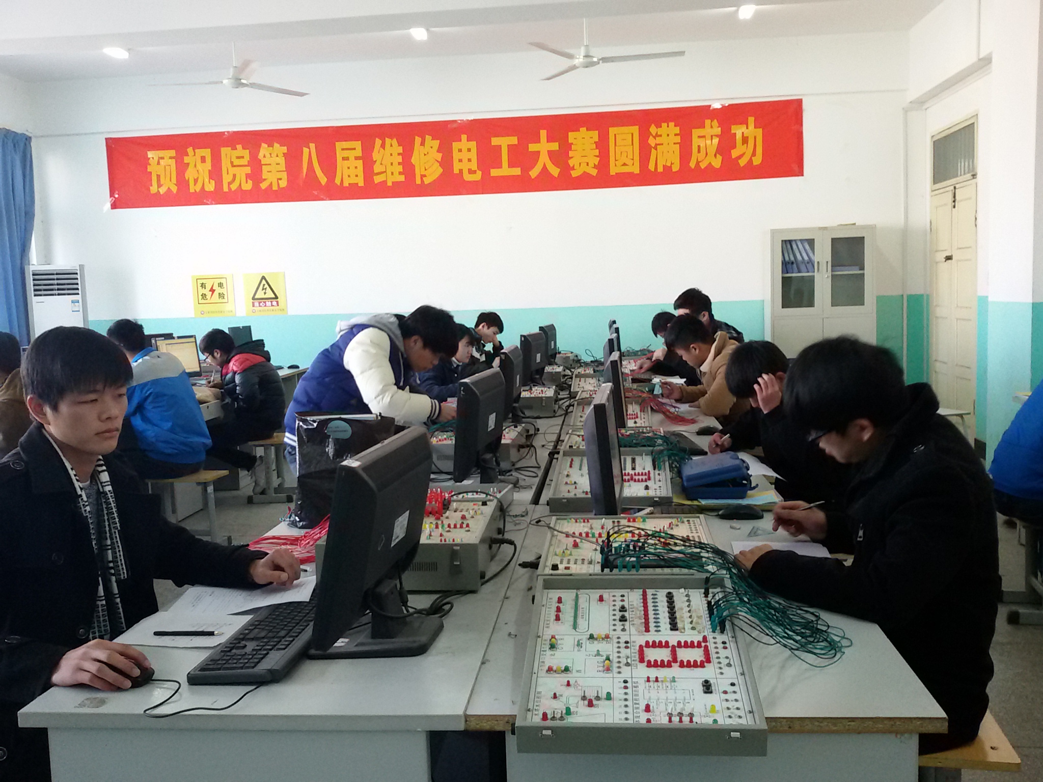 2015年12月6日院第八届维修电工技能大赛决赛在院实训楼308、312、313成功举办。竞赛组委会在赛前进行了周密的筹备,预决赛和培训工作有序开展。该赛项吸引了学院多个专业的100余名选手参加;经过预赛选拔,闯入决赛的班的赵华春同学脱颖而出获得本次大赛的特等奖。