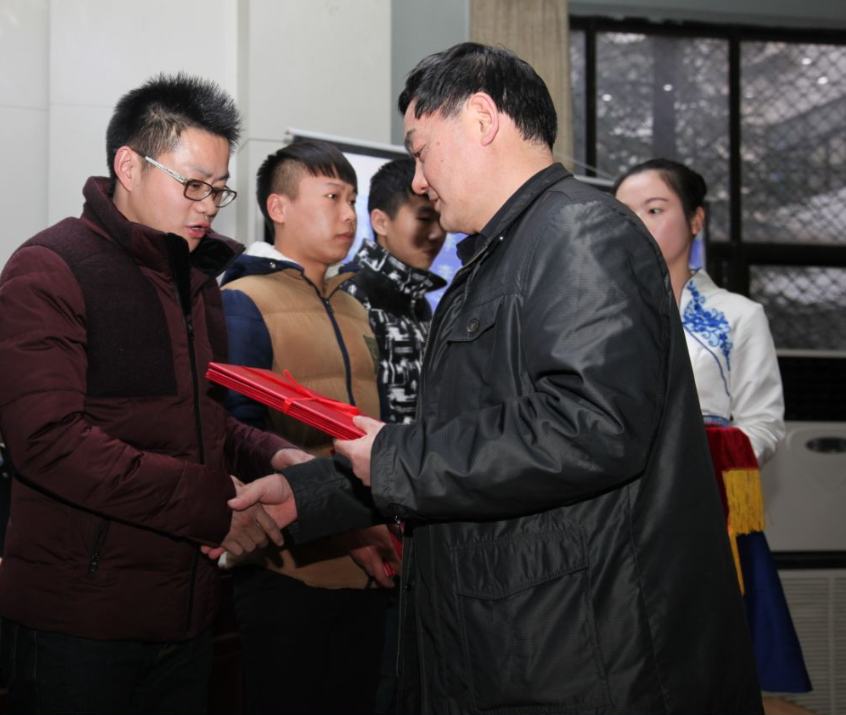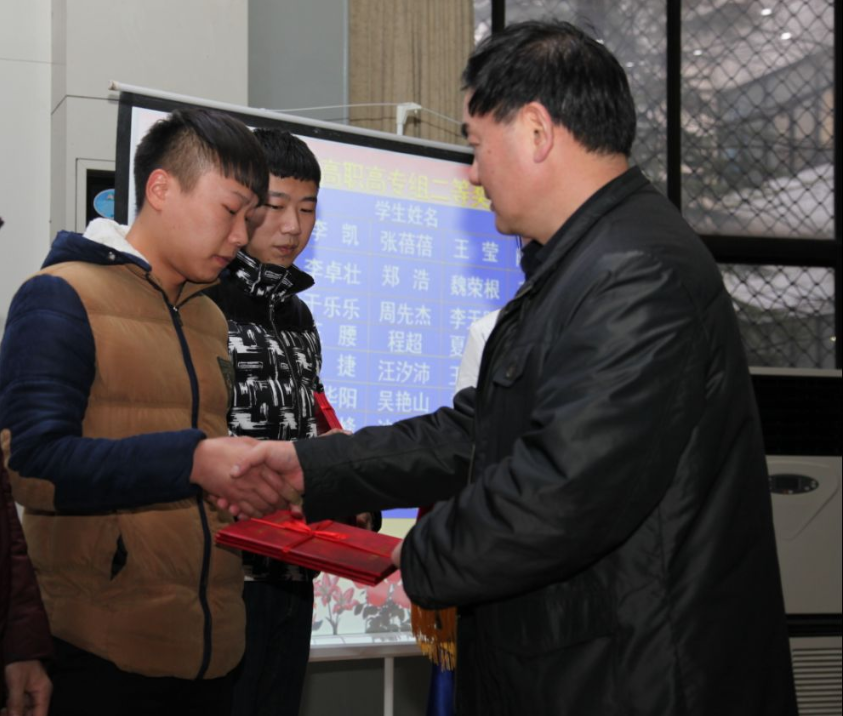 教育厅副厅长李和平为吴年祥老师及学生代表周先杰颁奖