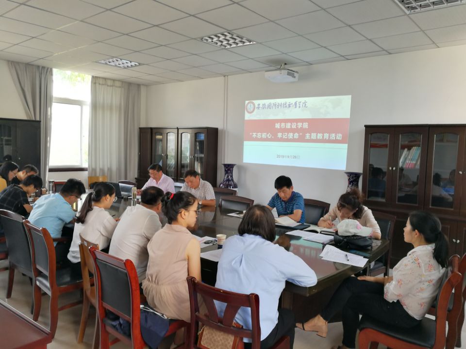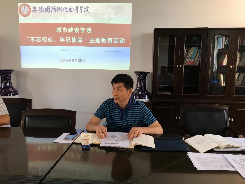 为深入贯彻落实习近平新时代中国特色社会主义思想,扎实推进“不忘初心、牢记使命”主题教育,9月29日,城市建设学院第一、二党支部在知行楼319会议室召开全体党员大会集中研讨学习,校党委副书记,纪委书记朱德明出席此次会议,会议由城市建设学院党总支副书记叶启衡主持。