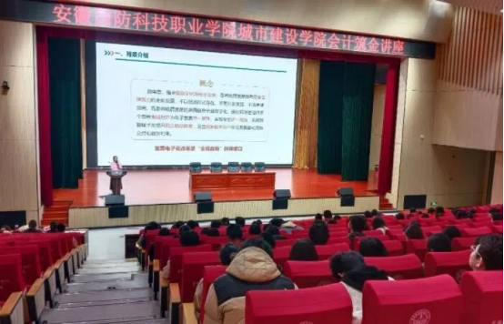 本网讯(学生通讯员 吉恩婷)11月22日,由城市建设学院举办会计协会承办的“筑金讲堂”——“基于‘金税四期’数电票背景下的企业税务风险防范”主题讲座在产教融合大楼多媒体报告厅开展。活动邀请城市建设学院教师王红娟主讲,城市建设学院部分教师和学生代表参加了此次活动。