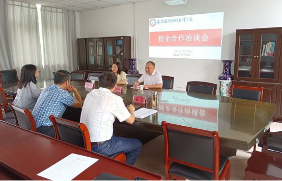 王红林首先向企业介绍了学院校企合作的发展情况,回顾了学院与振兴公司在校企合作方面作出的努力与取得的成绩,对下一步双方在校企合作层面提出了建设性意见。紧接着,张宗江表示随着职业教育法的修订,职业教育发展迎来新的发展契机,振兴公司作为六安市的知名企业,希望能和学院在人才培养方案编写与修订、横向课题申报、校本教材编写、实践教学等方面进一步加深合作。邹恒祥为学院的热情接待表达了谢意,他表示公司自2017年与学院开展校企合作以来成果颇丰,近几年来学院为公司输送了大量优质毕业生,且在企业中已是中坚力量,自2017年来入职的毕业生目前在企业的成本、财务、项目等部门就职,情况稳定。公司也诚挚邀请校方深入企业进行指导,在专业培训方面给予企业一定的支持。