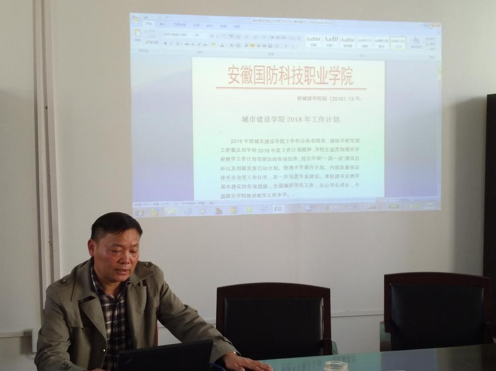 会上,张显国首先布置了学院的近期工作,并对工作的重点提出了要求。随后带领大家专题学习了《2018年学校工作要点》、《2018年学校教学工作计划》、《城市建设学院2018年度工作计划》等文件,并根据文件精神结合学院的工作实际作了精准解读。