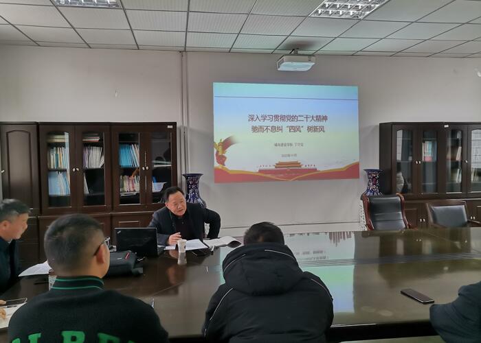 为深入学习宣传贯彻党的二十大精神,深刻领会、准确把握党的二十大精神实质和丰富内涵,凝心聚力,汲取力量,11月30日下午在城市建设学院会议室,校纪委书记丁守宝同志为全体教师党员上《深入学习贯彻党的二十大精神,驰而不息纠“四风”树新风》专题党课。城市建设学院全体党员聆听党课,党课由学院党总支书记张宗江主持。