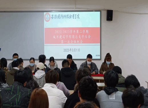 会上,张宗江从安全隐患排查,基础疾病摸排,严禁酗酒,交通安全以及预防春季传染病和做好舆情工作六个方面对全体学生干部进行了细致全面的安全教育。最后,张宗江书记立足新时代新形势,以当代大学生的使命与责任为出发点和落脚点,提出了四点殷切希望。一是提振精神、调适状态,要正确认识三年来抗疫取得非凡成绩和疫情防控政策的优化调整,尽快适应新变化,以崭新面貌和最佳状态投入到新学期的学习与生活中。二是坚定理想、培根铸魂,要深入学习党的二十大精神,深刻领会中国式现代化内涵,厚植家国情怀,提升综合素质,做与祖国同呼吸共命运的新时代大学生。三是聚焦主业、成长成才,全面建设社会主义现代化国家、全面推进中华民族伟大复兴新征程中对科学知识和优秀人才的需要比以往任何时候都更为迫切,要把学习作为首要任务,激发内在动力,深怀“厚德、强能、励志、笃行”校训,努力成为全面发展型人才。四是向上向善、健康阳光,要以积极乐观的心态,保持青年人应有的朝气,弘扬正能量、传播正能量、辐射正能量,用奋斗的青春点燃激情,让青春在全面建设社会主义现代化国家的火热实践中绽放绚丽之花。会上,袁野宣读了《城市建设学院第六届团总支学生会干部任职的通知》,对2022年度团学工作进行了回顾总结,肯定了去年任职的学生干部的工作,并提出了新一年团学工作的期望。随后,袁野宣读了《2023城市建设学院雷锋活动月方案(草案)》,对即将到来的学雷锋活动月的具体工作进行了安排和布置。