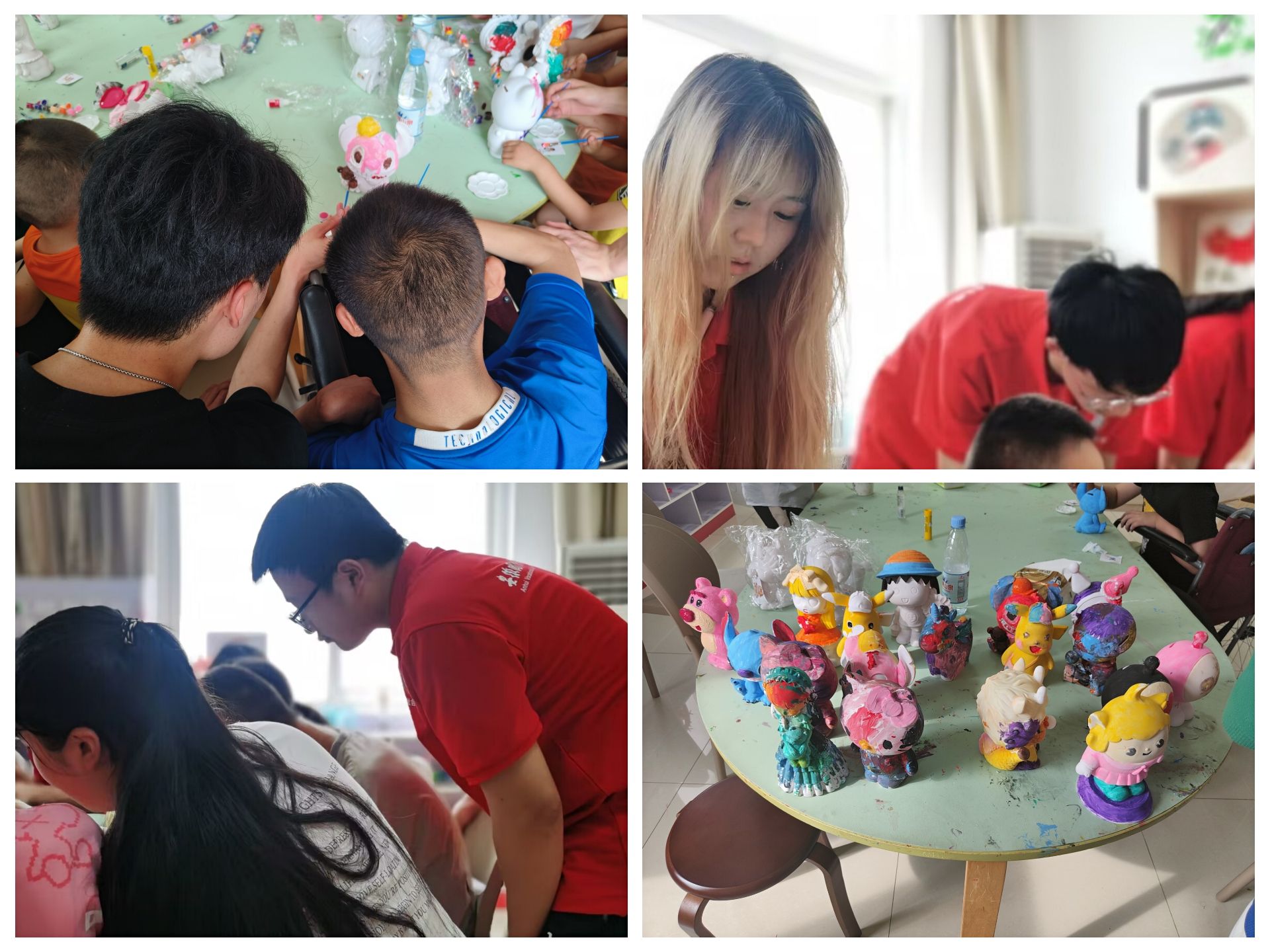 城市建设学院“晨曦”暑期社会实践团队还和信息技术学院暑期社会实践团队一起走进六安市社会福利院,为福利院的小朋友们送去玩具、笔记本、铅笔学习用品等。福利院负责人向同学们介绍了福利院的基本情况,并带领他们参观了福利院的各类场馆设施。“大朋友”与小朋友们一起给陶瓷娃娃涂色,现场一片欢声笑语。福利院负责人丁主任微笑着说:”这些孩子都非常懂得感恩,他们私下说过非常喜欢哥哥姐姐们来陪他们一起玩。其实国家及社会组织给他们的物质供给是比较充足的,他们缺少的其实是陪伴。”当即两个学院实践团队的队员们与小朋友约定了今后会经常过来,还会带来排练好的节目表演给小朋友们看。