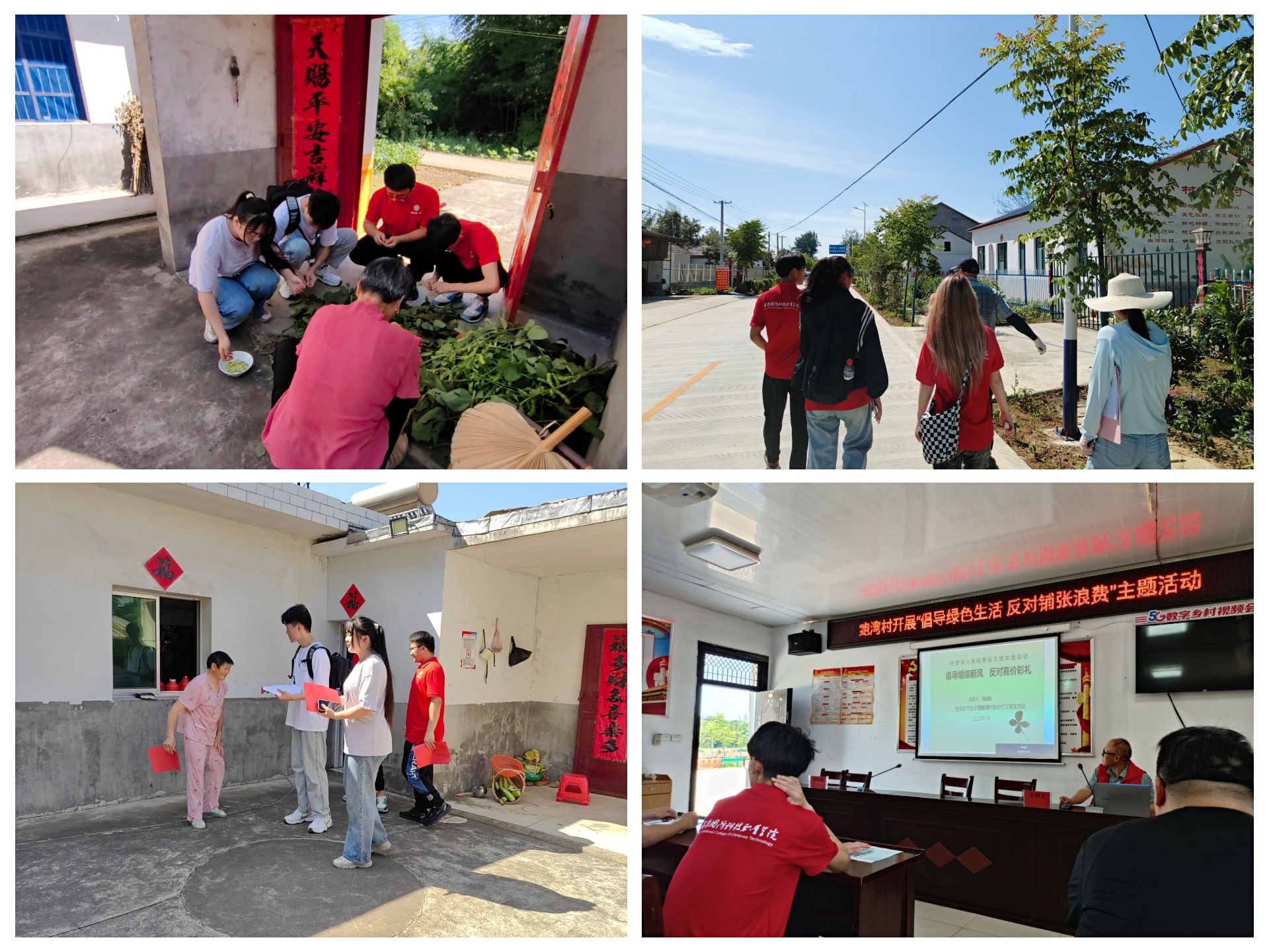 鲍湾村是安徽省六安市金安区先生店乡下辖的一个村级行政单位,位于先生店乡东南端8公里,属丘陵地区,辖34个村民组,总人口3100人。全村水田面积2694亩,旱地面积2000亩,山林地面积400亩。队员们来到鲍湾村实地考查后发现村里的劳动力大多外出务工,村里多以留守儿童和老人为主。村里的公共设施较为齐全但村中河湖及小池塘较多,存在儿童嬉水导致溺水的风险。队员们针对鲍湾村的特点以及“乡村振兴”工作队和村两委的实际工作需要制定了相应的工作计划。先后开展了燃气安全使用情况排查、“倡导绿色生活 反对铺张浪费”主题活动、儿童防溺水及食品安全专题讲座等活动。