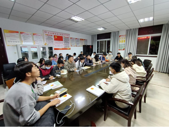 10月20日晚,党总支副书记叶启衡带领全体学生干部,深入学习贯彻习近平总书记“七一”重要讲话精神,深刻认识了习近平总书记“七一”重要讲话精神的丰富内涵和精神实质,指出学生干部要牢记初心使命,立足本职,肩负起时代赋予的重任。