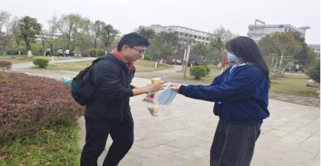 3月6日由城市建设学院晨曦志愿者服务队组织志愿者在一号、二号教学楼各出入口对前来参加考试的同学测量体温,并督促学生进教室前戴好口罩,给未戴口罩同学发放口罩。