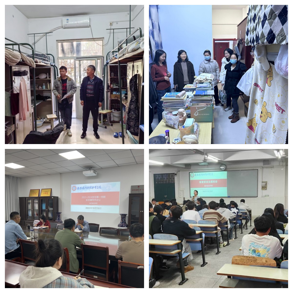 领导高度重视,深入宿舍排查安全隐患。城市建设学院党总支书记张宗江、党总支副书记叶高洁定期带领专、兼职辅导员深入学生宿舍,宣传教育宿舍安全管理的重要性,不定期以“四不两直”方式对学生宿舍开展安全专项突击检查,对检查出的问题进行通报、责令整改并“回头看”,推动宿舍安全管理工作“向前进”。