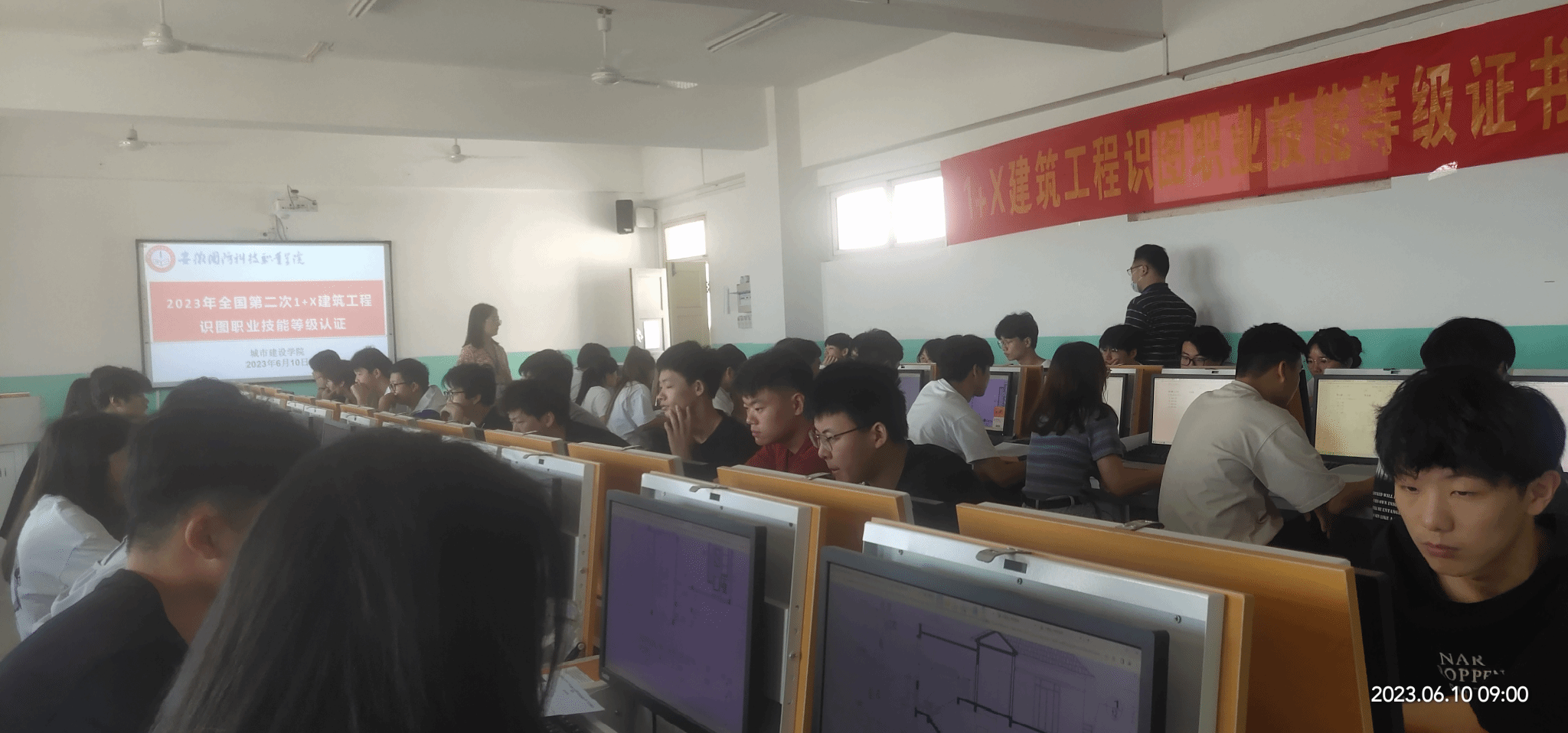 2023年6月10日,城市建设学院在实训楼513和613成功举办第二届“1+X建筑工程识图(初级)”技能等级考证工作,此次考证21、22级建筑类专业学生共100人报名参加考试。