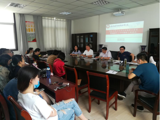 为了确保学院重点工作顺利推进,加强党建和领导作风建设,我院于6月3日于学院会议室召开了党总支民主生活会征集群众意见暨2020上半年教职工座谈会,会议由院长张显国主持,全院教职工参加座谈会议。