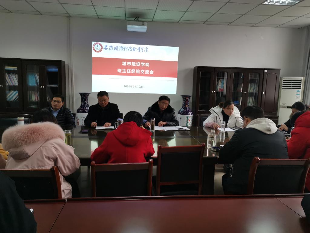 为加强班主任队伍建设,进一步强化班级管理的针对性和实效性,提高学院德育工作和班级管理水平,1月2日下午,城市建设学院在知行楼319办公室召开班主任工作经验交流会,院长张显国、副书记叶启衡及17、18、19级班主任参加了此次会议。