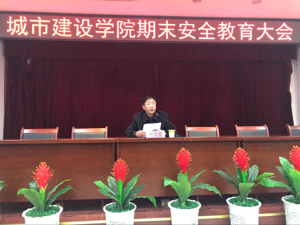 时光荏苒,光阴飞逝。本学期的工作又将告一段落,为加强我院学风、校风建设,严肃学院考风考纪,确保学院教学与学生工作质量,12月20日下午,城市建设学院在图书馆报告厅召开了期末安全教育大会。院党总支副书记叶启衡做专题报告,学院各年级班主任、辅导员以及全体学生干部参加了会议。