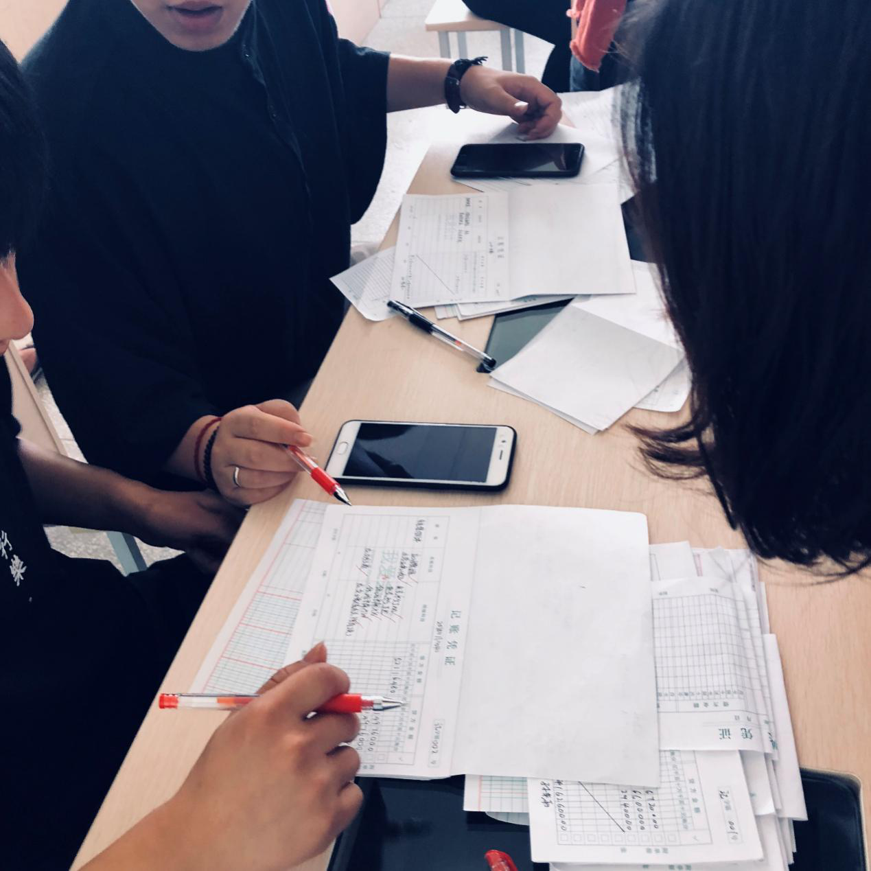 第二环节“登记日记账”:选手们根据自己填好的凭证在规定的时间内完成日记账的登记。