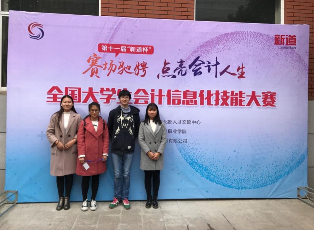 2017年11月18日,第十一届“新道杯”大学生全国会计信息化大赛安徽省赛区比赛在安徽中澳科技职业学院圆满落下帷幕。本次大赛由工业和信息化部人才交流中心主办,安徽中澳科技职业学院承办,新道科技股份有限公司提供技术支持。在全省近30支参赛队伍中,beat365由15统计与会计核算班左艳、李震楠、宋玉雪、张芳利以及16统计与会计核算班刘小宝、杨明星、邵菊花、李利影组成的两支代表队,在会计教研室赵之元、王红娟两位老师指导下,脱颖而出,分别荣获安徽省团体二等奖和三等奖。