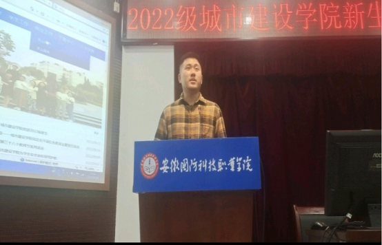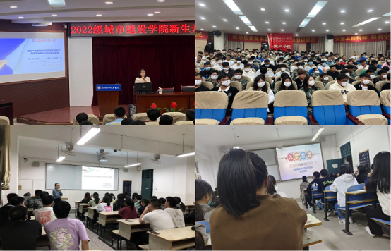 本网讯 9月24日晚上,城市建设学院2022级新生开学典礼暨专业入学教育报告以线上线下相结合的方式举行,在图书馆报告厅设立1个主会场,在2号教学楼设立2个分会场。学院党总支书记张宗江、院长王红林、党总支副书记叶高洁、副院长左飞、教研室主任、专业负责人及部分专业教师、辅导员、新生班主任以及2022级全体新生参加本次活动。开学典礼由张宗江主持。