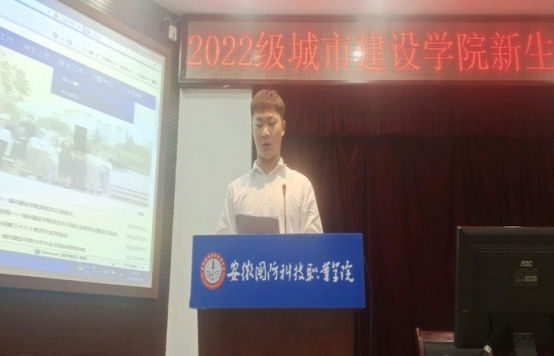 2021级工程造价专业赵春秋同学作为老生代表发言。他从学长的角度,与同学们分享了自己进入大学后的体会,希望同学们要端正学习态度,积极参加学院组织的各项大赛。同时希望同学们可以在学校度过一段愉快而有意义的大学时光。