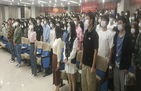在庄严的国歌声中,开学典礼暨专业入学教育报告正式拉开帷幕。