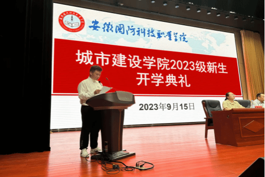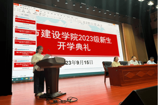 本网讯 9月15日晚上,城市建设学院2023级新生开学典礼暨专业入学教育大会在大学生活动中心多媒体报告厅举行。学院党总支书记张宗江、院长王红林、学院党总支副书记叶高洁、副院长左飞、组织员胡仕婷、团总支书记袁野、各教研室主任、专业负责人、新生辅导员、全体专业教师以及2023级全体新生参加本次活动。开学典礼由张宗江主持。