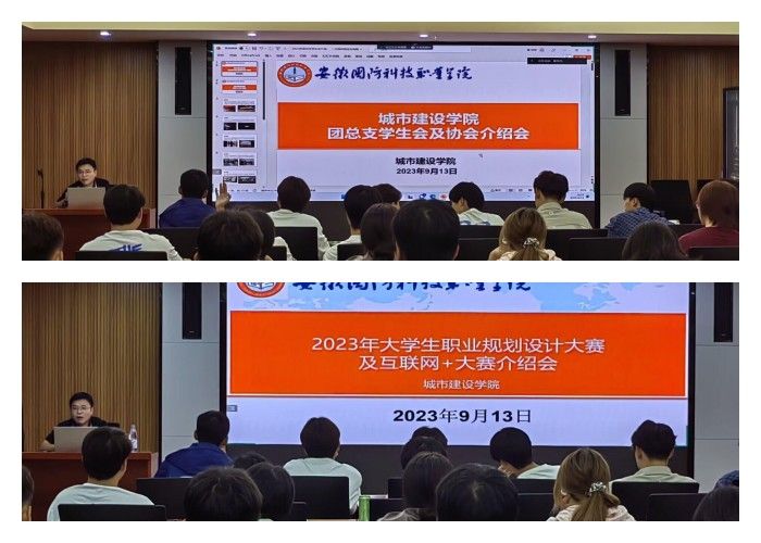 9月13日晚,城市建设学院团总支书记袁野为新生介绍团总支学生会和协会,号召大家在学习之余积极参加学院举办的“筑金大舞台”等特色活动。各位新生入学后要做好学习规划,树立职业发展理念,培养创新意识,积极参加大学生职业生涯规划大赛和“互联网+”大赛。