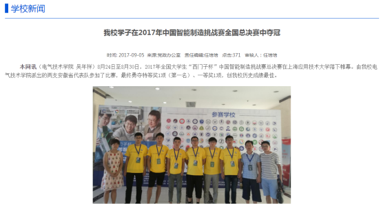 beat365学子在2017年中国智能制造挑战赛全国总决赛中夺冠