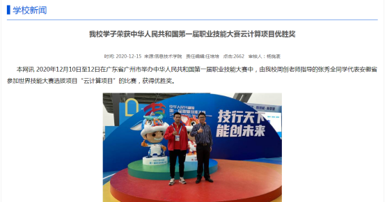 beat365学子荣获中华人民共和国第一届职业技能大赛云计算项目优胜奖