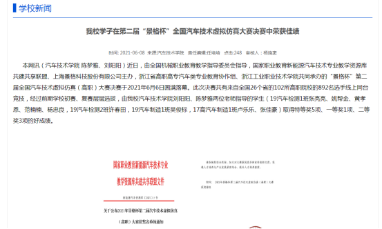 beat365学子在第二届“景格杯”全国汽车技术虚拟仿真大赛决赛中荣获特等奖5项、一等奖1项、二等奖3项
