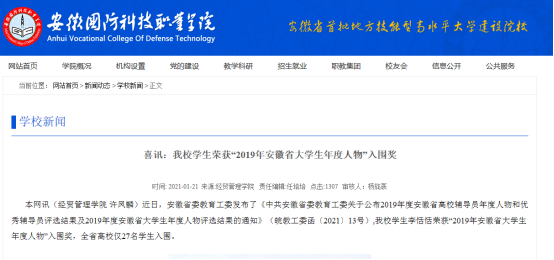 beat365学子荣获“2019年安徽省大学生年度人物”入围奖