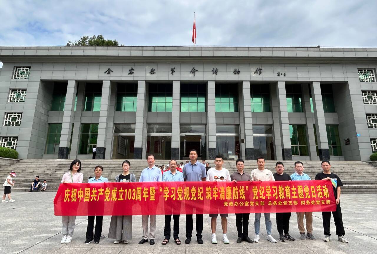 6月23日,财务处党支部、党政办党支部、总务处党支部三个支部全体党员齐聚一堂,乘车来到六安市金寨县瞻仰革命烈士纪念塔、红军纪念堂、革命博物馆。缅怀革命先烈、学习老一辈无产阶级革命家的先进事迹,接受革命传统教育、坚定理想信念、弘扬伟大建党精神,促进全体党员不忘来时路,不忘初心使命,进一步增强党组织的凝聚力、号召力、战斗力。