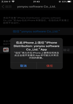 苹果手机用户点击允许后,需要在进入手机:设置-通用-描述文件