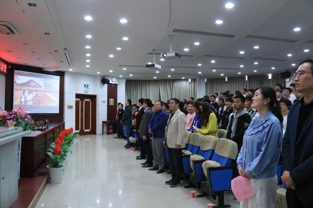 第三环节,全体师生共同观看了感动中国的《中原好同学:接力帮扶19年 爱心传递不停歇》视频,这样一群19年来风雨无阻、不离不弃陪在朱春雷身边的“中原好同学”,用实际行动践行着奉献、善良与仁爱,深深地感染着现场全体师生。