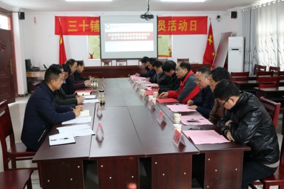 学校党委在太平村二楼会议室召开座谈会,专门听取学校扶贫工作队汇报驻村扶贫工作。座谈会上,太平村第一书记、学校扶贫工作队队长孙武代表驻村工作队全面汇报了2018年扶贫工作情况、存在的主要问题和困难以及2019年工作打算。三十铺镇镇长项阳、太平村党支部书记宋杰简要介绍了镇、村一年来扶贫有关情况,对学校扶贫工作队给予了充分肯定和高度评价,并对学校党委关心支持三十铺镇脱贫攻坚工作表示衷心感谢。