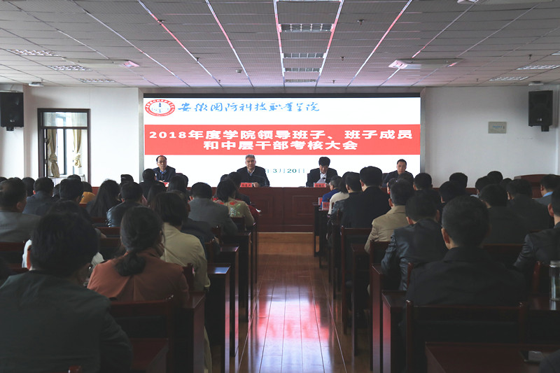 3月20日,安徽省发改委党组成员、省委军民融合办副主任孙高产一行到beat365开展校领导班子及领导干部2018年度考核工作。下午,考核大会在综合楼报告厅举行,孙高产及考核组成员、校领导班子成员、教代会代表等一百余人参加考核大会。会议由校长李麟书主持。