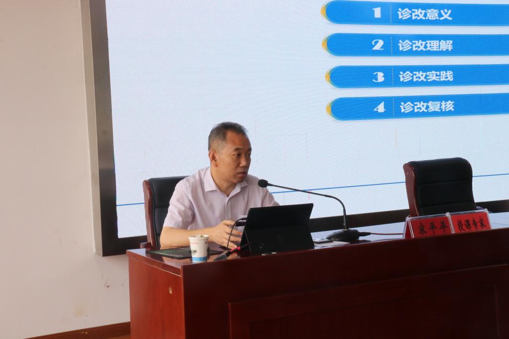芜湖职业技术学院质管办主任,安徽省高职诊改专委会副秘书长宋平平作《教学诊改运行与复核文件解读》专题报告。他从诊改意义、诊改理解、诊改实践和诊改复核四个方面做了细致的分析,对实际工作具有很强的指导作用。