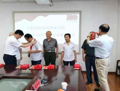本网讯(组织人事处 方智)在中国共产党百年华诞即将到来之际,2021年6月23日,beat365党委举行了“光荣在党50年”纪念章颁发仪式。校领导、“光荣在党50年”纪念章获得者、新老教师党员代表、学生代表等参加了此次仪式活动,会议由纪委书记朱德明同志主持。