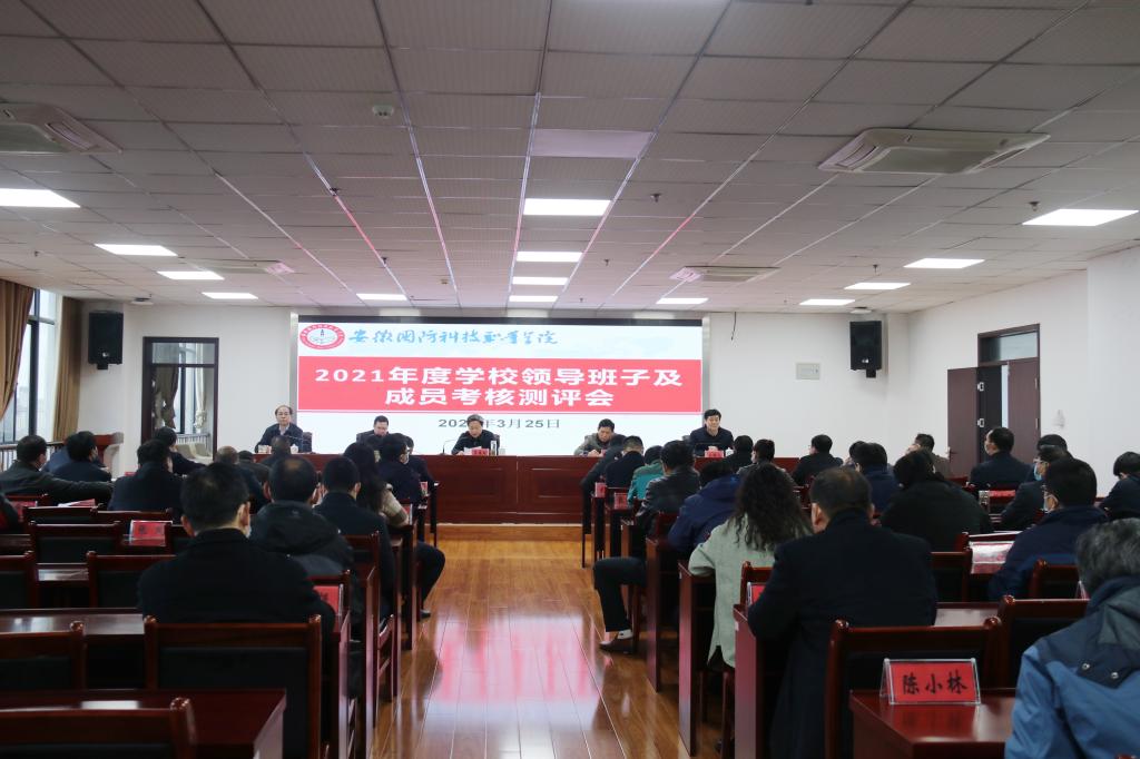 3月25日,安徽省委军民融合办副主任、二级巡视员吴端阳一行来beat365开展2021年度学校领导班子及成员考核工作。下午,考核述职会在秉心楼12楼会议室召开,吴端阳同志及考核组成员、学校领导班子成员、中层干部正职、副高及以上职称教职工等70余人参加会议。会议由校长李麟书主持。