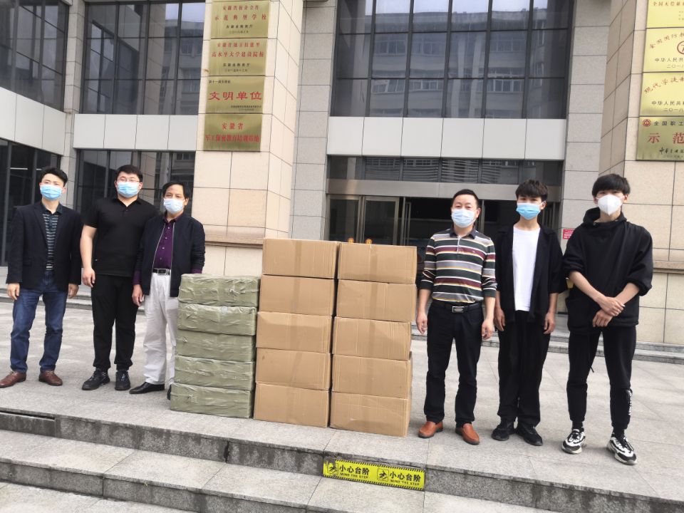 5月17日下午,我院2017届毕业生王勇同学在新闻报道中看到六安疫情消息后,深受触动,主动驱车来校,给学校捐赠口罩2万个、洗手液200瓶。