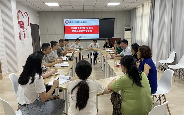 本网讯 7月8日下午,校党委书记余嗣元到马克思主义学院调研指导工作,调研会议在马克思主义学院智慧教室召开。校党委委员、宣传部部长、马克思主义学院院长陈思主持了本次调研会议,马院各教研室主任、思政课教师参加了此次调研会议。